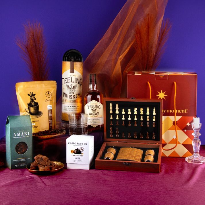 Un cadou cu adevărat special, ce îmbină savoarea produselor gourmet cu rafinamentul unui whiskey irlandez de excepție și plăcerea unei pauze de relaxare. Whiskey-ul Teeling Single Grain, recunoscut pentru notele sale catifelate și echilibrate, este acompaniat de cafeaua de origine Pedron și specialitățile toscane crocante Dolci Amari.