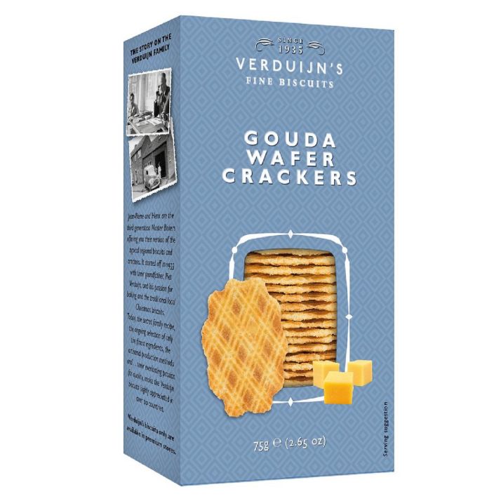 Crackers-urile cu brânză gouda maturată de la Verduijn's Fine Biscuits sunt o expresie autentică a rafinamentului culinar olandez. Delicați, subțiri și crocanți, acești biscuiți sărați sunt îmbogățiți cu gustul intens al goudei maturate, oferind o experiență savuroasă și echilibrată. Fie că sunt savurați ca atare sau alături de brânzeturi și vinuri fine, crackers-urile devin un detaliu sofisticat pentru orice moment gourmet.