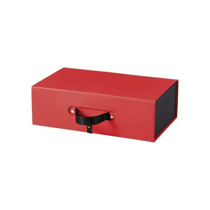 Inspirată de eleganța evenimentelor de gală, cutia dreptunghiulară Red Carpet aduce un plus de rafinament oricărui cadou sau produs premium. Nuanța intensă de roșu, completată de panglica neagră care servește drept mâner, oferă un contrast sofisticat și un efect vizual remarcabil.