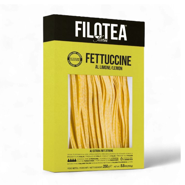 Fettuccinele Filotea sunt fâșii late și plate de pastă, cu o suprafață ușor rugoasă care reține excelent sosurile. Infuzate cu lămâie naturală, aceste paste au o aromă subtilă și revigorantă, ce se îmbină perfect cu sosuri ușoare, pe bază de unt, ulei de măsline sau brânzeturi fine.