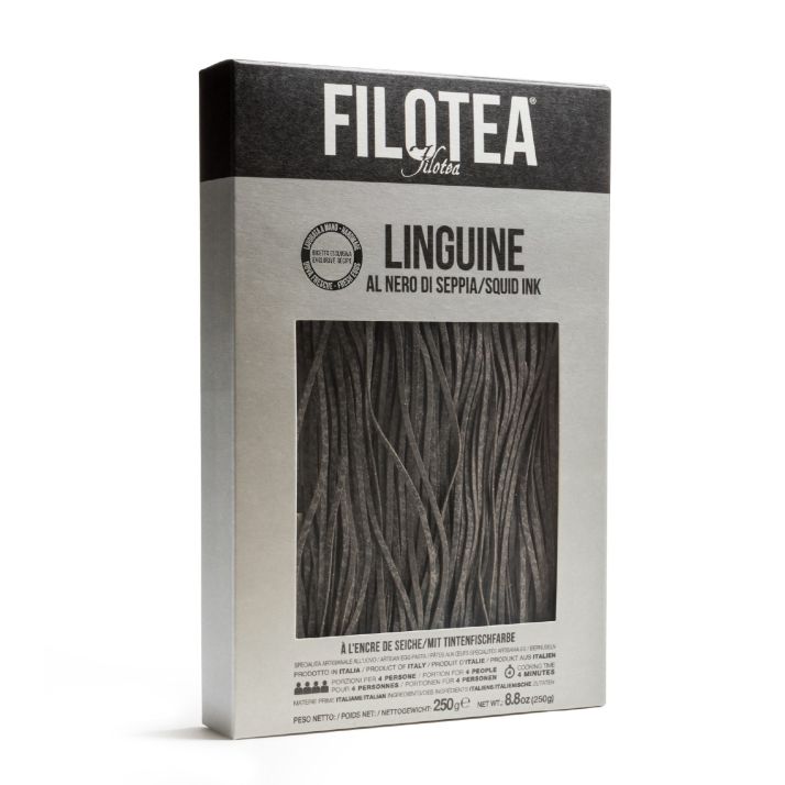 Filotea produce pastele Linguine folosind doar făină de grâu dur de calitate superioară, ouă și făină de grâu moale, cerneală de sepie, fără adaosuri artificiale.