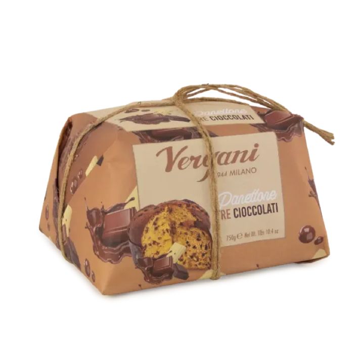 Un panettone creat special pentru iubitorii de ciocolată: moale, parfumat și bogat, cu trei tipuri de ciocolată – neagră, cu lapte și albă – distribuite generos în interiorul miezului pufos. Această reinterpretare modernă a rețetei tradiționale aduce un plus de intensitate și diversitate mesei de sărbătoare.