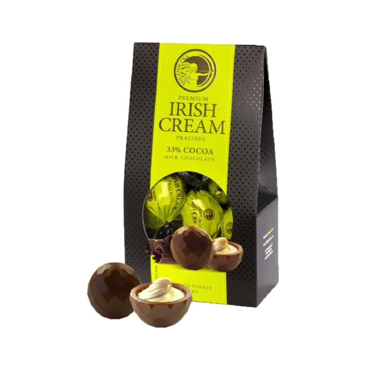 Praline de ciocolată cu Irish Cream. Este învelită într-un strat generos de ciocolată cu lapte, un rafinat desert de inspirație irlandeză.