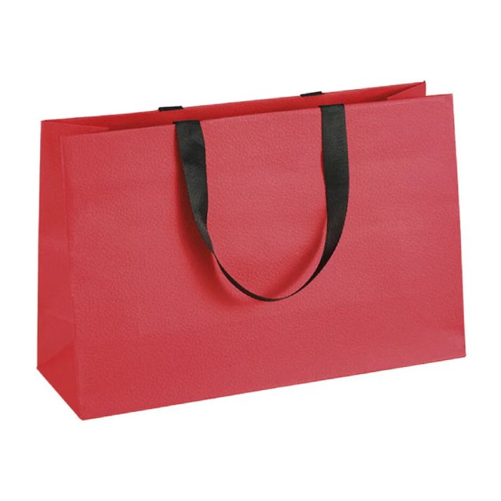 Această pungă cadou din hârtie premium se distinge prin finisajul său embosat, care reproduce fidel textura pielii, oferind un aspect sofisticat și un plus de valoare vizuală. Tonul de roșu intens, cu reflexe calde, transmite eleganță clasică și se asociază perfect cu o gamă largă de produse gourmet, artizanale sau de lux. Mânerele din panglică neagră, rezistente și plăcute la atingere, completează armonios estetica ambalajului, iar sistemul de închidere metalic adaugă funcționalitate și rafinament suplimentar. Calitatea materialului utilizat garantează rigiditate și durabilitate, asigurând o prezentare impecabilă a conținutului.