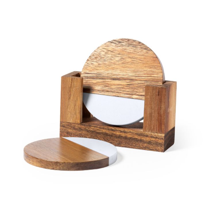 Completează-ți servirea băuturilor cu acest set premium de suporturi pentru pahare, realizat dintr-o combinație rafinată de lemn de acacia și inserții din extract de marmură. Designul sofisticat îmbină naturalețea lemnului cu eleganța marmurei, oferind un aspect luxos oricărei mese.