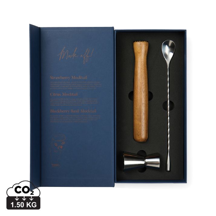 Cutia cadou FSC® protejează instrumentele și transformă fiecare experiență de mixologie într-un moment distractiv și creativ, făcând acest set cadoul ideal pentru pasionații de cocktailuri fără alcool.