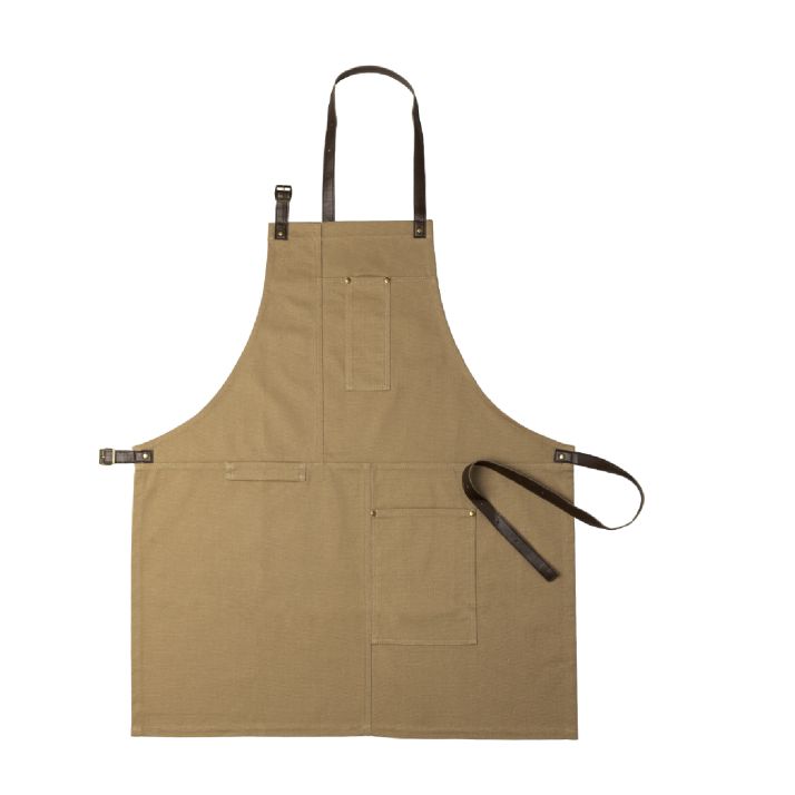 Șorțul se remarcă prin culori rafinate și bretelele din piele ecologică (PU), reglabile cu ajutorul cataramelor, care asigură o potrivire perfectă și confort de lungă durată. Cusăturile întărite și niturile metalice sporesc rezistența, în timp ce buzunarele multiple oferă spațiu practic pentru depozitarea ustensilelor sau accesoriilor de lucru. Cu o lungime ce ajunge sub genunchi (68 x 80 cm), șorțul este adaptat pentru utilizare intensivă și conferă un aspect profesional și elegant.