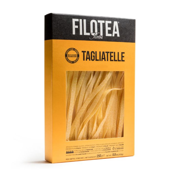 Tagliatelle Filotea este o pastă artizanală italiană de înaltă calitate, după o rețetă tradițională transmisă din generație în generație. Cu un conținut ridicat de ou și un proces atent de uscare lentă, aceste paste oferă o textură și un gust care aduc aminte de pastele făcute în casă, dar cu avantajul unei durabilități extinse.