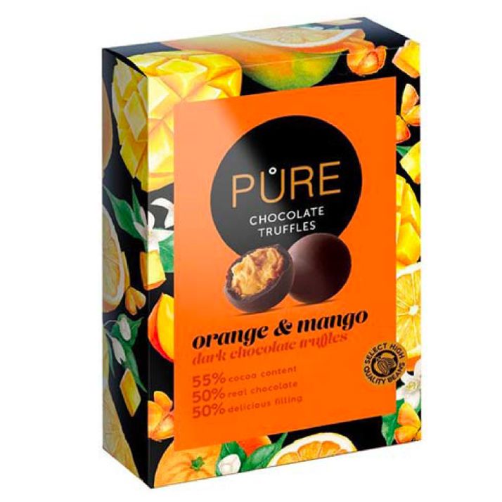 Trufe de ciocolată cu aromă de portocală și mango Pure Chocolate 148g